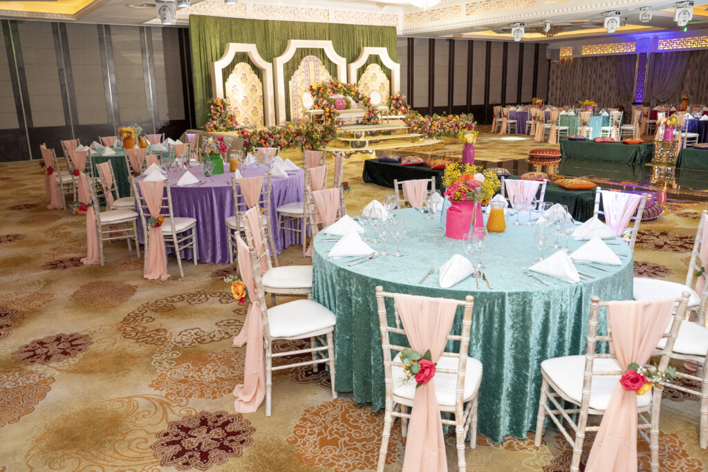 The Emirates Suite is adjacent and interconnected to the Grand Ballroom. The décor is captivating with Arabian flair and chic with a Gold Bridal Suite, a separate foyer area and car park facility.